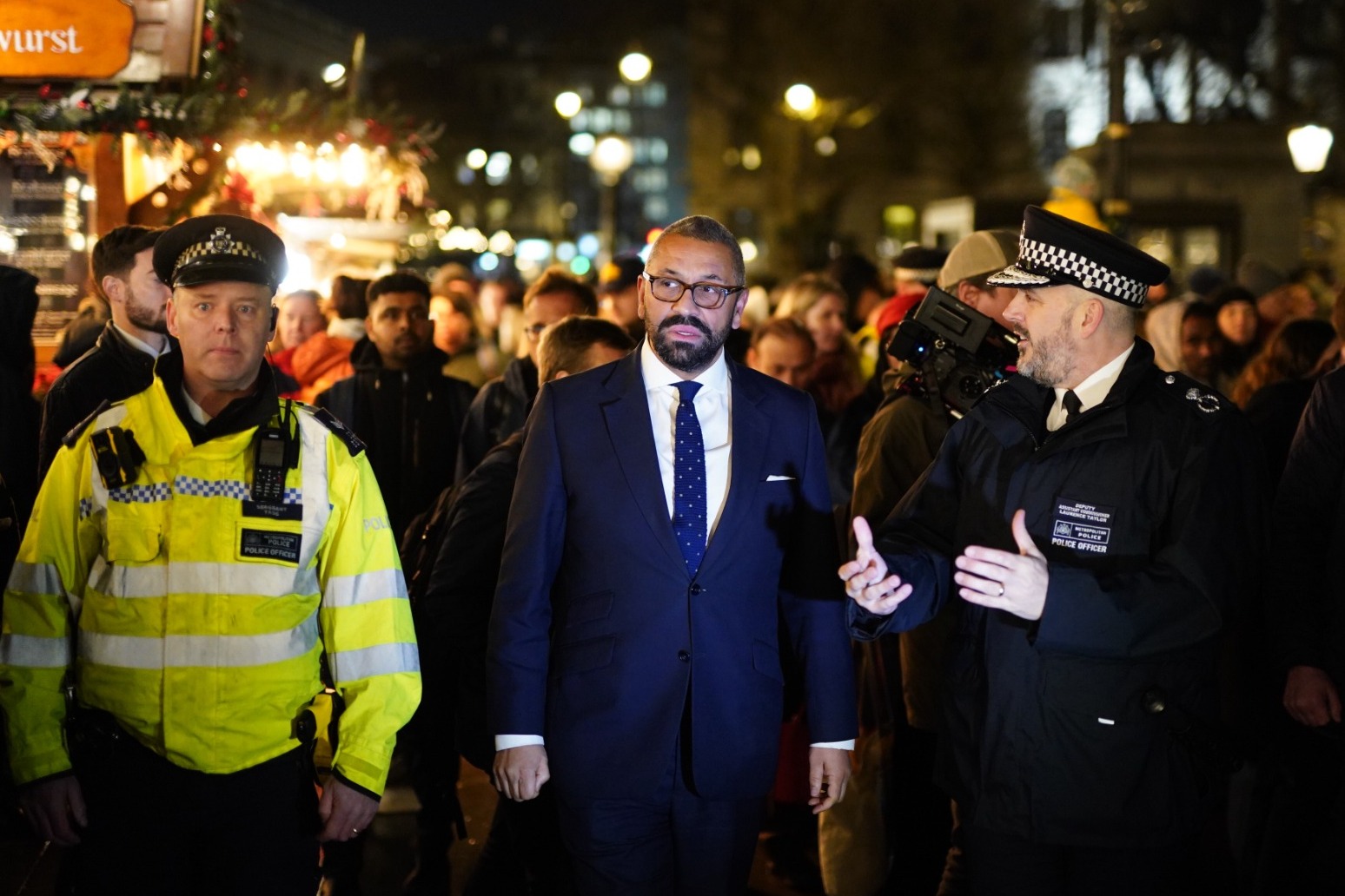 On Tuesday evening, James Cleverly visited the Christmas market at London’s Trafalgar Square to see Counter Terrorism Policing’s “winter vigilance” campaign in action.