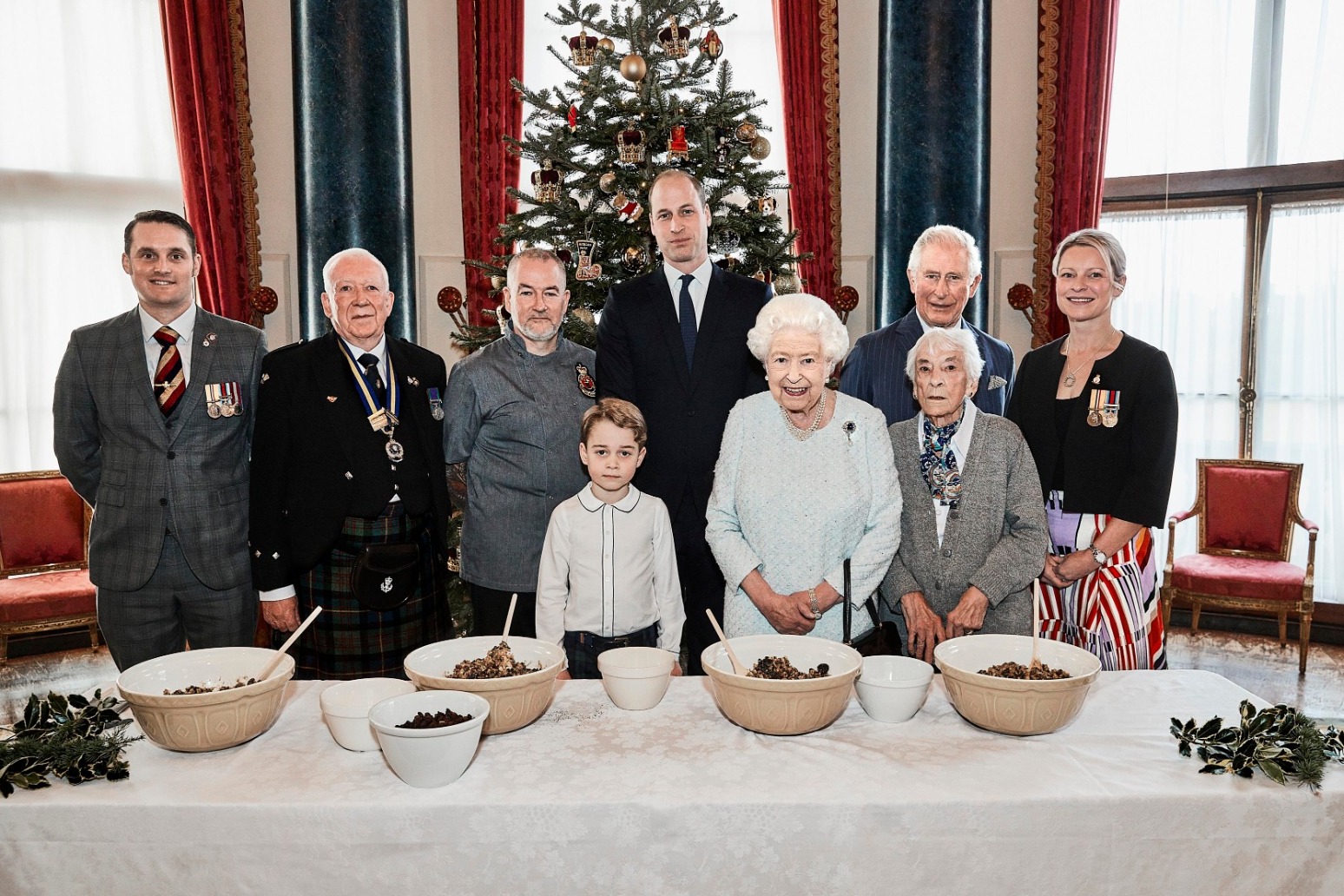 The Queen, the Prince of Wales, Duke of Cambridge and Prince George prepared Christmas puddings earlier this month at the palace.