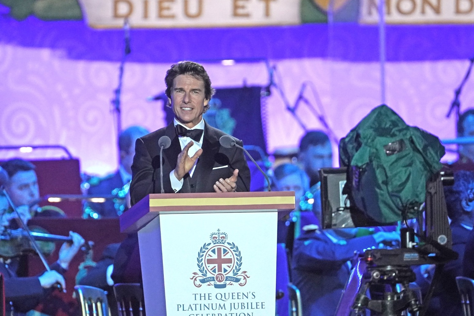 The Hollywood A-lister was a special guest at the Queen’s Platinum Jubilee celebrations, introducing The King’s Troop Royal Horse Artillery at the open-air arena in Windsor.