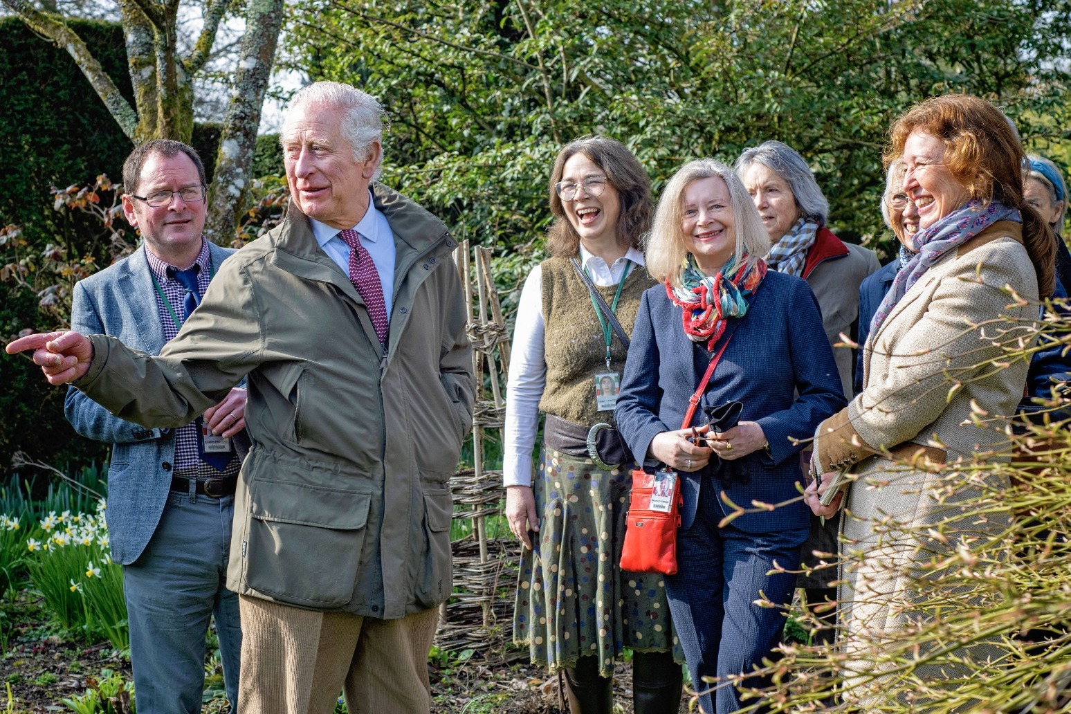 Charles walked among the daffodils and welcomed tour guides at Highgrove Gardens in Gloucestershire, and led them on a route around the greenery.