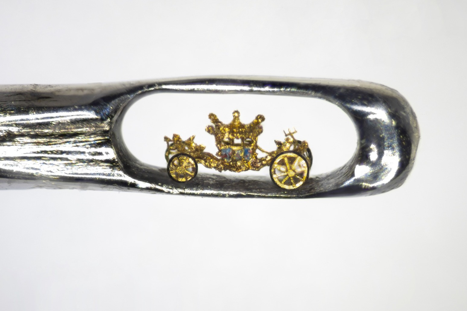 Sculptor creates tiny royal coach in the eye of a needle as Jubilee tribute