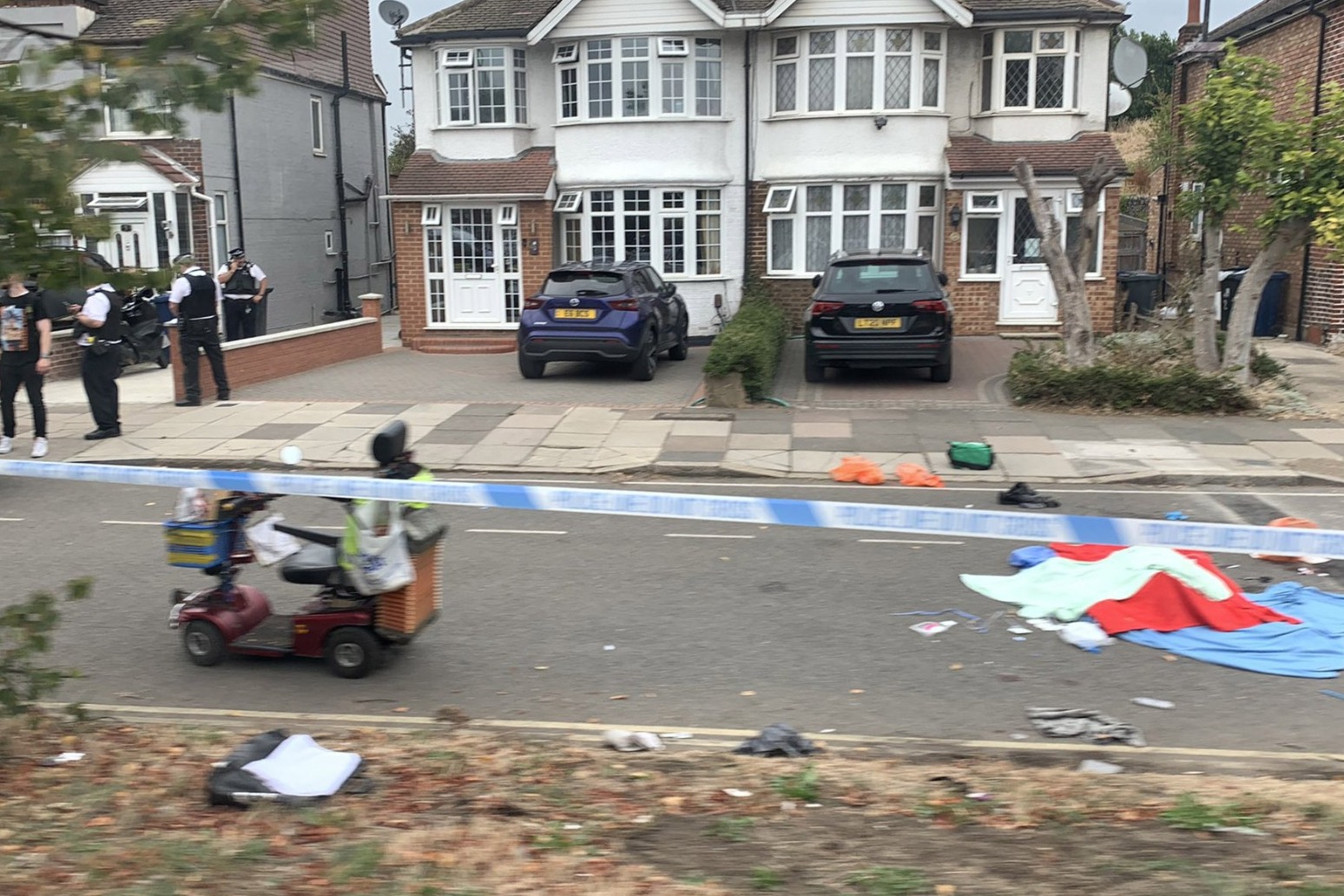 A police cordon had been thrown over the site of residential semi-detached houses. It covers a T-junction between Cayton Road and Runnymede Gardens, which runs parallel to the busy A40.