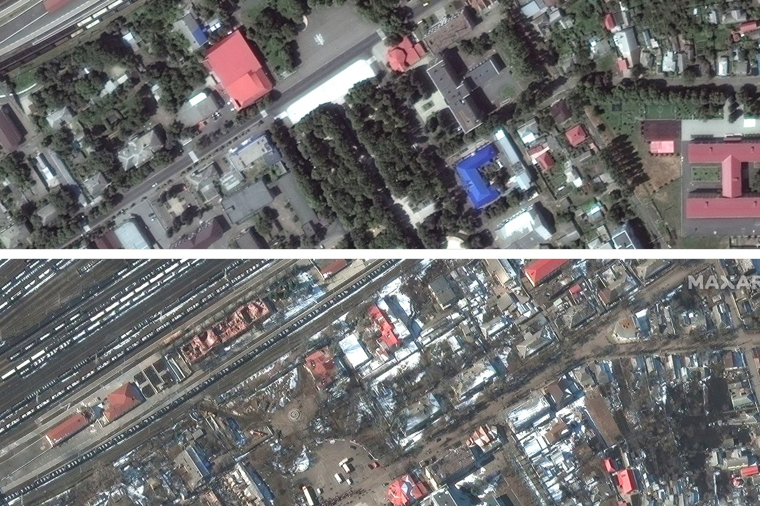 Satellite imagery on Monday from Maxar Technologies showed huge white letters on the pavement outside the theatre spelling out “CHILDREN” in Russian — “DETI” — to alert warplanes to the vulnerable people hiding inside.