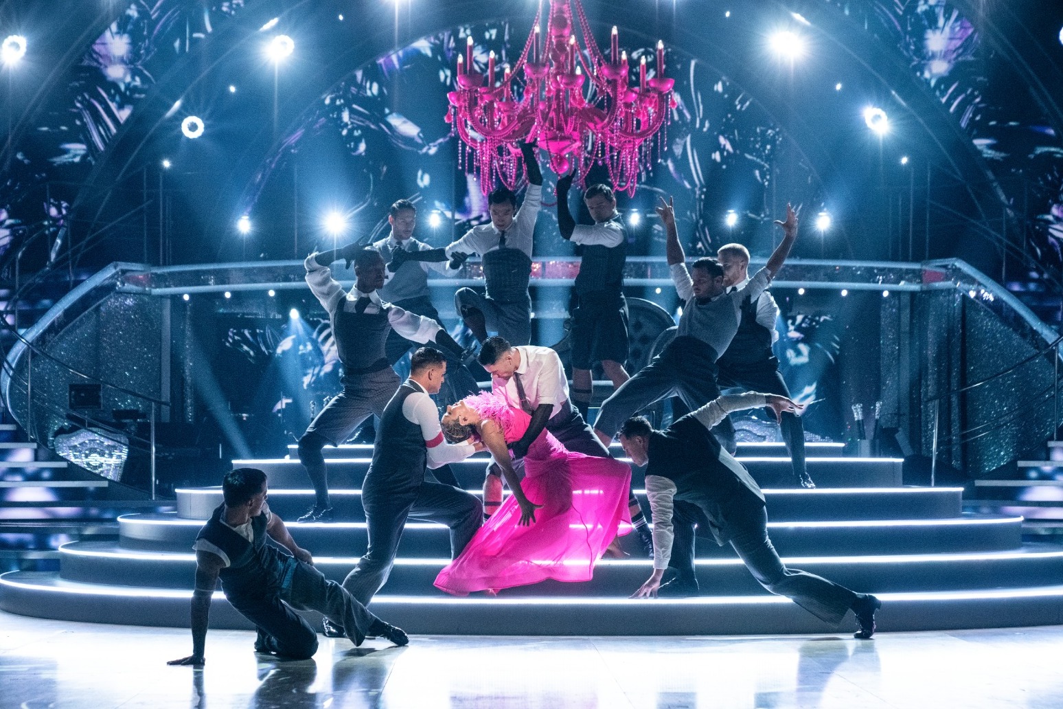 The routine was choreographed by Jason Gilkison and is danced to a medley of Training Season by Dua Lipa, Busy Earnin’ and Keep Moving both by Jungle, and Candle Flame by Jungle and Eric the Architect, all performed by Dave Arch and his band.