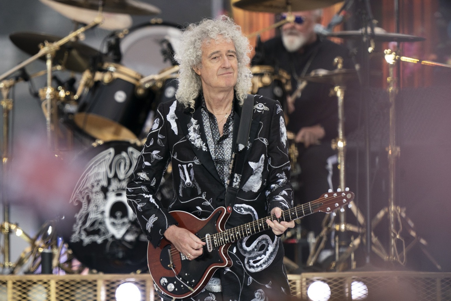 Dame Shirley Bassey was also in attendance following her dazzling performance of her classic track Diamonds Are Forever during the ceremony where she wore a diamond-embellished silver dress with a flowing cape.